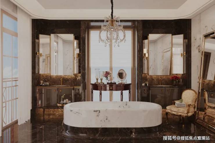 秩序,是主卫浴空间布局的重点。两个独立台盆相对而立,分属男女主人,营造出从容自如的使用体验。大面积运用黑白撞色大理石,让空间的秩序美与材质的自然美融合,颇具观赏韵味。