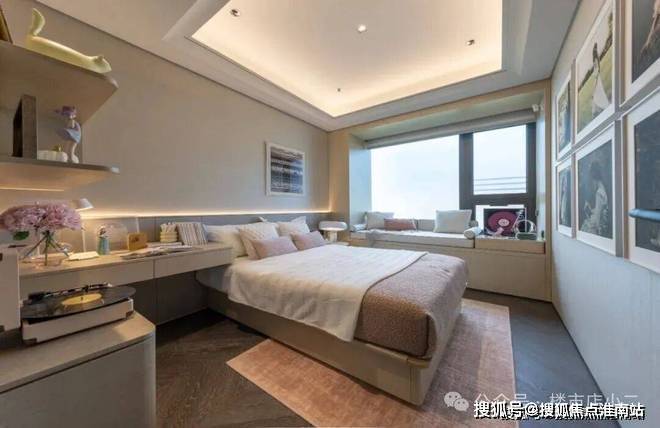2#号楼的边套主卧户型配置270°环幕飘窗,不仅延伸空间尺度,更将水岸、园景“框”成私藏壁画。晨间,阳光透过飘窗铺满床榻;深夜,枕着河风与月光入眠,这是专属建面约165㎡的“观景特权”
