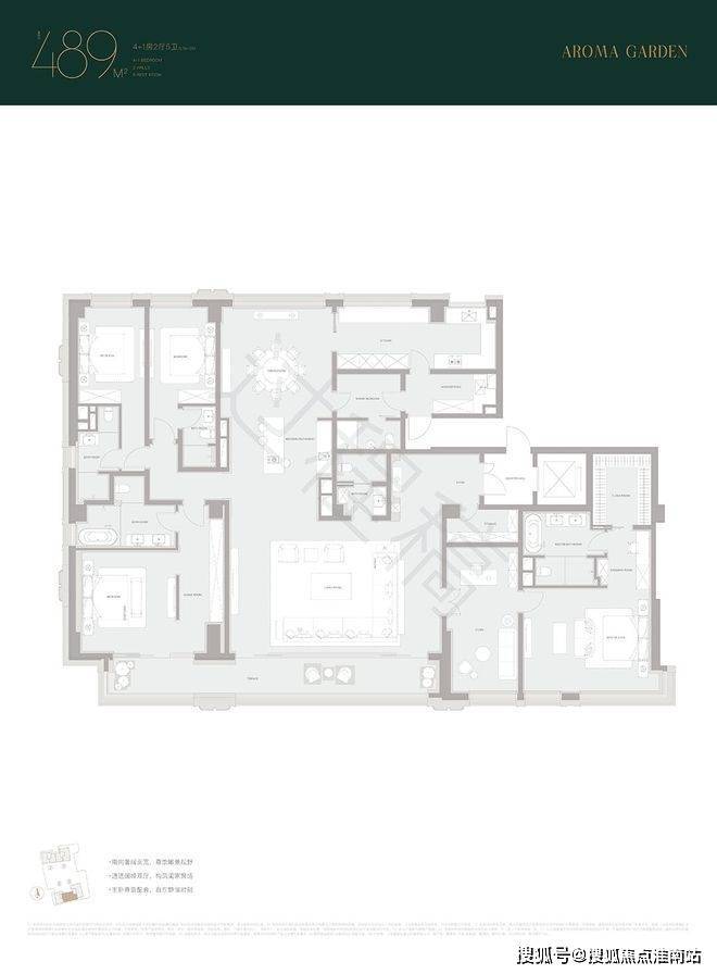 以建面约489㎡户型,实际使用面积就比同类项目多出约25㎡(相当于一间主卧的尺度)。