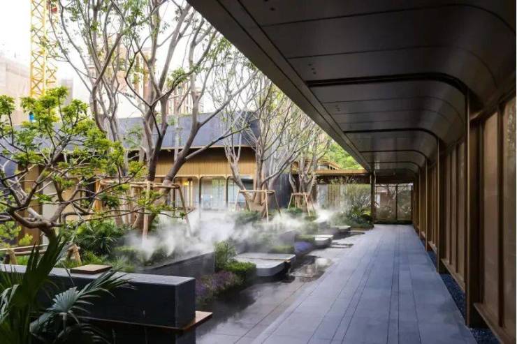 整个会所的500平米的立体庭院,打破传统沉闷感,巧妙营造出“空中花园、森林秘境、水岸客厅”三重沉浸场景,让业主仿佛置身于立体花园之中!