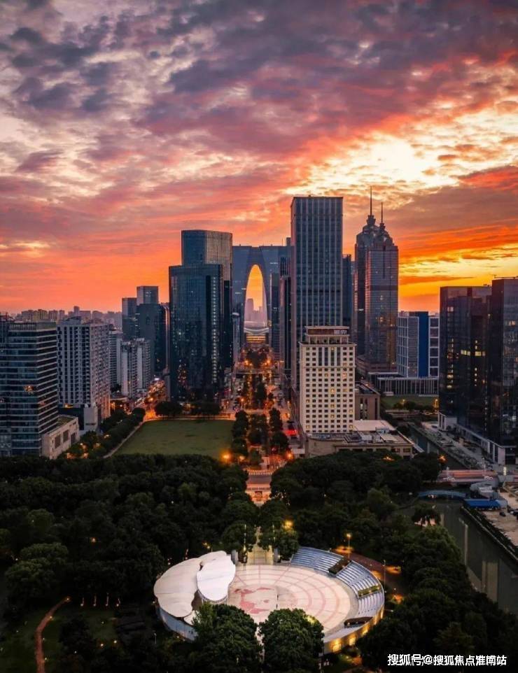 园区发展的第一站、示范区,东方之门、苏州中心、环球188等地标伫立,CBD的商业规模、办公集群规模、公园、学校资源云集。