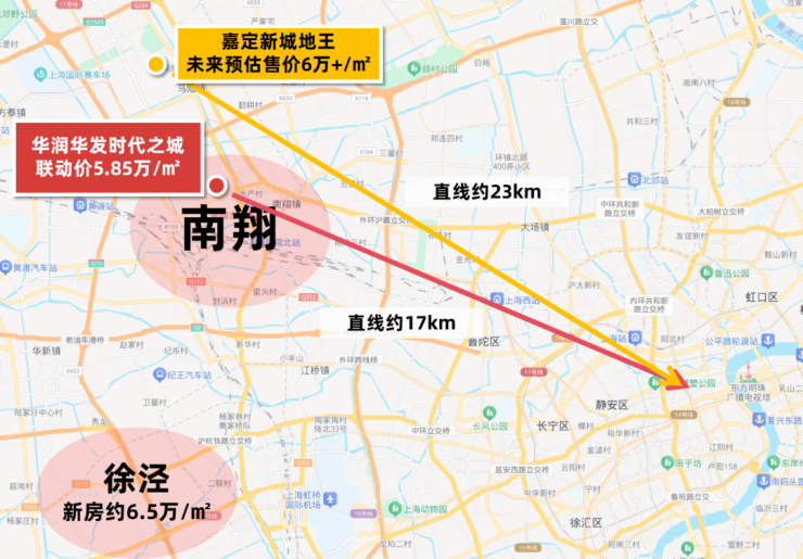 项目还是目前是为数不多的倒挂项目,南翔周边二手次新标杆挂牌7万+/㎡(华润中央公园),时代之城均价仅5.5万-6.25万/㎡,价差超20%。
