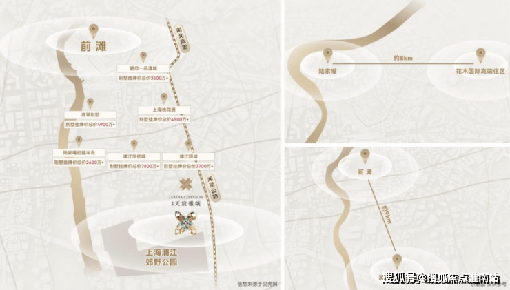 更值得关注的是其区位能级:占位陆家嘴-世博-前滩城市发展主轴,坐享前滩作为“一江一河”CAZ 世界样板区的顶层红利,同时身处闵行五大地级区中心、浦东四大城镇圈叠加的新浦江中心(规划中),既避开了前滩核心区的高土地成本,又能同步承接核心资源外溢——这种“近享繁华,退守低密”的平衡,在上海别墅市场实属罕见。