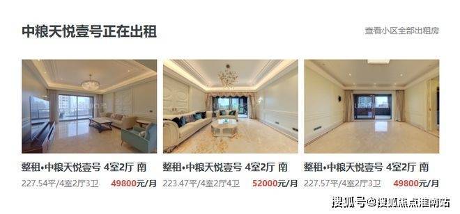 同板块中粮天悦壹号月租金,数据来源链家网