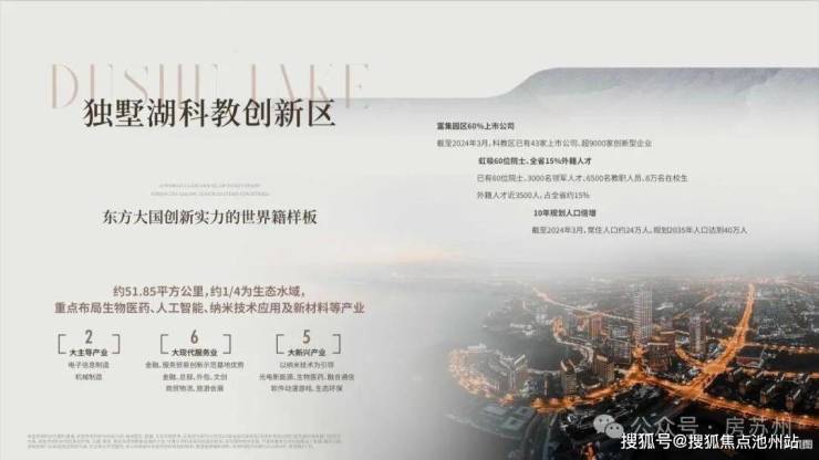 园区之上,双湖为王,独墅湖科教创新区的规划,以高起点、高标准的定位,逐步成为苏州的“创新之核”和现代城市副中心。这里集聚60位院士、5000家科创企业,每年诞生超500项专利,云集15家高端科研院所,33所中外名校荟萃,38家上市企业熠熠生辉;60位院士领衔,万千精英汇聚,激荡创新浪潮。