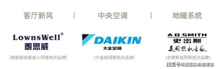质造高端三大件精装:装修品牌皆选用一线大牌配置,户内搭配中央空调、地暖、新风系统提升居住舒适度: