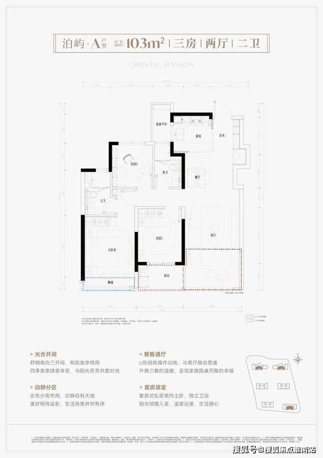 南向三开间朝南,约9.8米大面宽,约7米阔绰阳台,餐客厅贯通,并连接阳台,百变待客空间;套房式主卧,南联阔景飘窗,栖居更温馨舒适。