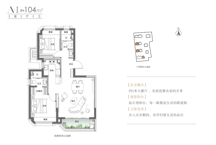 建面约104㎡ 2房产品,纯粹的改善级产品,104㎡只做两房,释放空间打造阔绰横厅,整个面宽约5米,预留了充足的改造空间。
