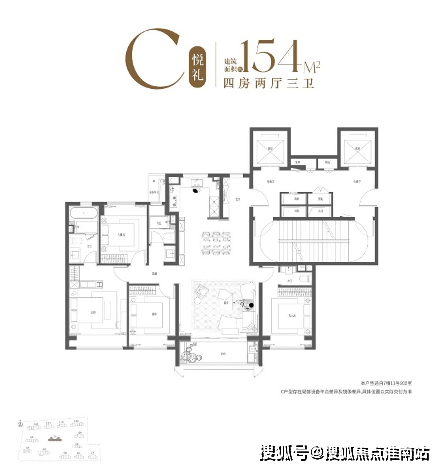 另外,主卧小家化的套房设计、270度的南向瞰景阳台、四开间朝南的开阔尺度。