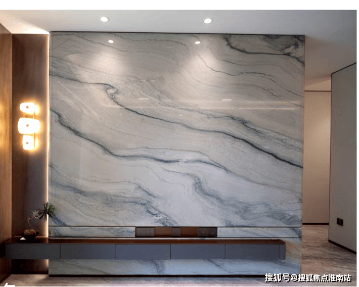 电视背景墙选用带有东方意蕴的万里河山石材,颜值超高!
