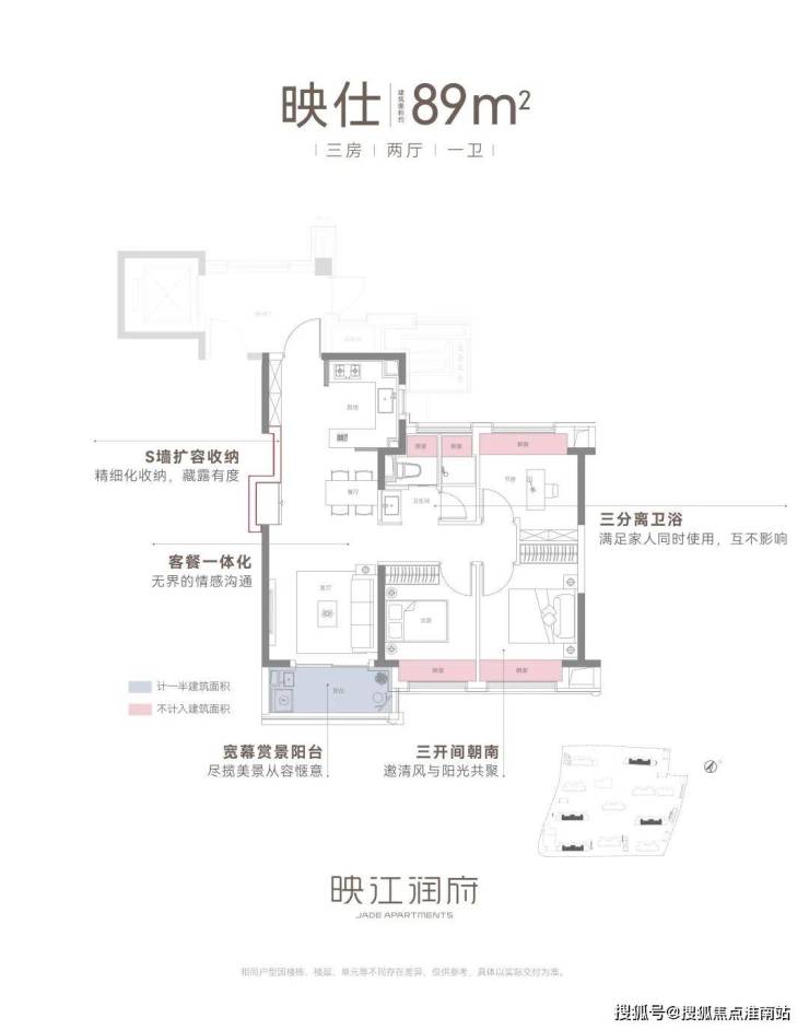 其次是户型设计。在户型产品同质化严重的当下,映江润府花更多心思在户型创新设计,给到置业者更美好的家的体验。建筑面积约89㎡王炸小豪宅户型,拥有四大高光细节和创新设计,在市面上同类产品中非常能打。