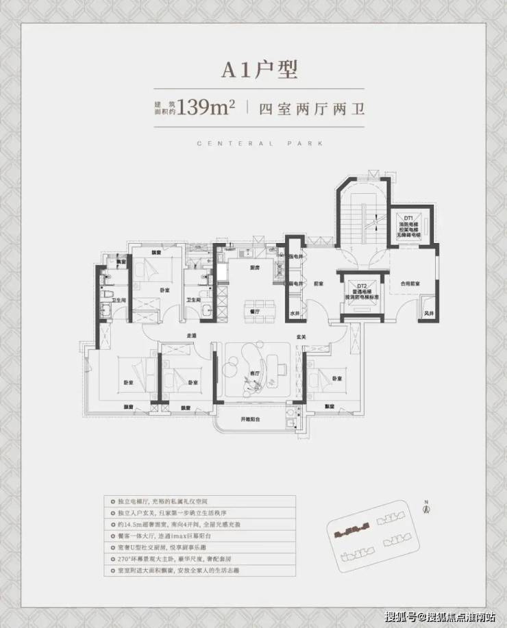 其中建面约139㎡ A1户型,就做到了约14.5米超奢南向面宽,全明横厅+IMAX巨幕阳台,让阳光成为家中常驻的贵客。