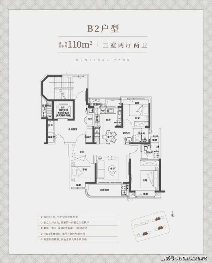 建面约110㎡B1户型,南向面宽也做到了约12.3米,单就这个面宽就秒杀了市面上同类型或同价位段的新盘。