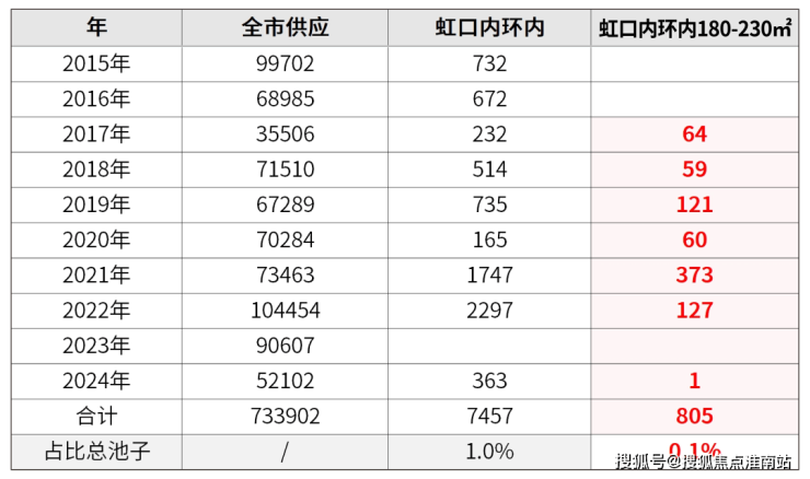 而虹口内环内建面约180-230㎡的改善户型数量再缩减10倍,只有805套,占比总池子约0.1%!10年难遇,千里挑一,在自住改善时代这样的产品能不贵吗?