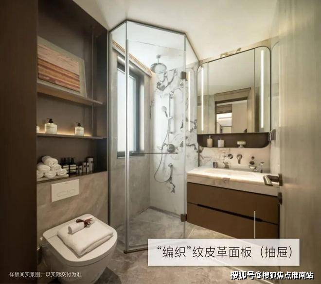 入户玄关柜与卫生间抽屉,采用 “编织纹理” 皮革包裹,✅✅江湾金茂府售楼处电话:400-891-9910✅✅指尖触碰到的不仅是材质,更是高定生活的仪式感。