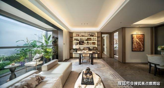 样板间不是传统“金碧辉煌”的,而是真正用艺术品味去打造。比如弧线,是建筑语言中极具表现力的元素,在室内贯穿始终。✅✅江湾金茂府售楼处电话:400-891-9910✅✅客厅吊顶一眼匠心,多层次处理,辅以弧形工艺,非常优雅。