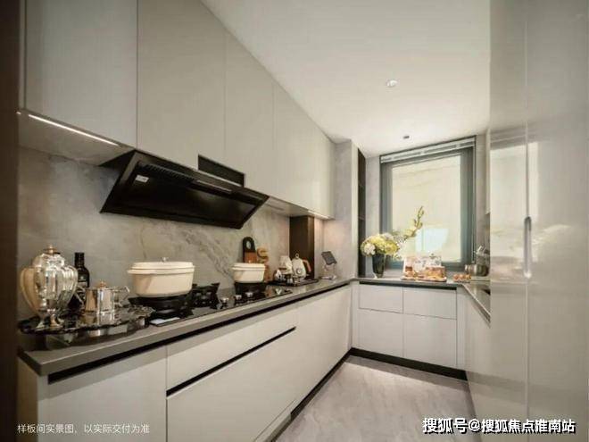 厨房也运用了飘窗拓展了操作台面,✅✅江湾金茂府售楼处电话:400-891-9910✅✅打造出了同级更宽敞实用的厨房。