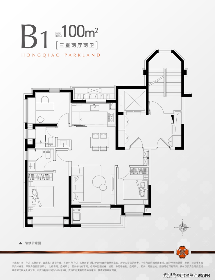 华发虹桥四季100㎡样板间实拍鉴赏▼: