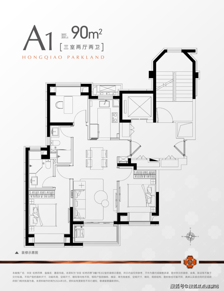 90㎡三房两卫:三开间朝南,LDKG一体化方厅
