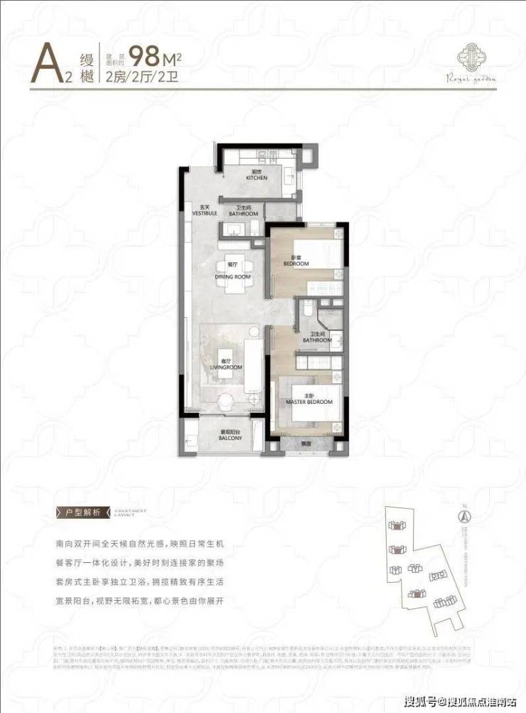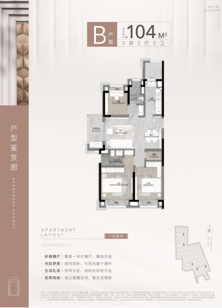 全明卫生间干湿分区、通风防潮。这套104㎡的3房2厅2卫,南北通透,户型方正,合理规划功能布局,追求品质人群优先好选择。