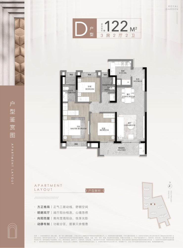 整体来看,这套122㎡通透全明户型,户型方正,空间利用率大;