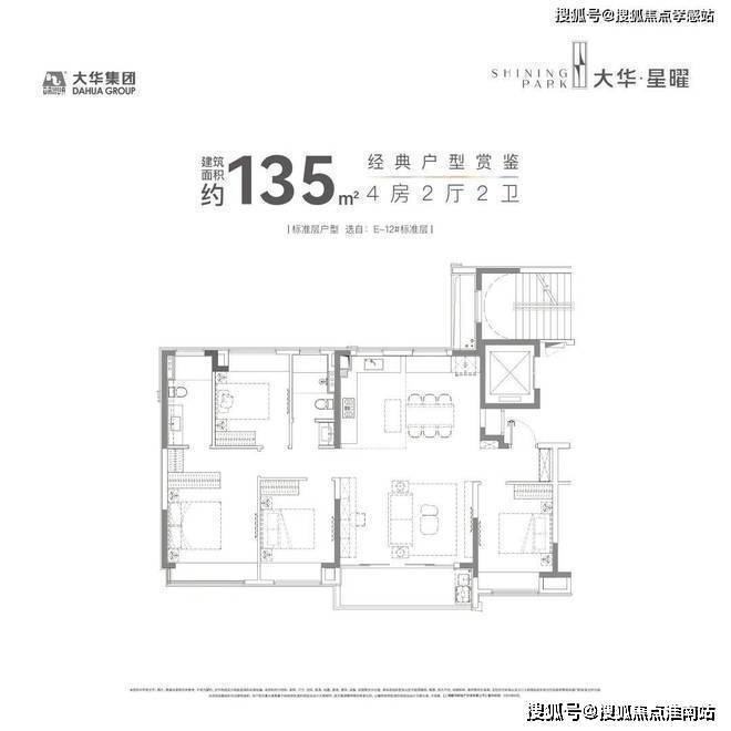 但大华星曜建面约120㎡就做了真四房设计,保证了户型实用性。