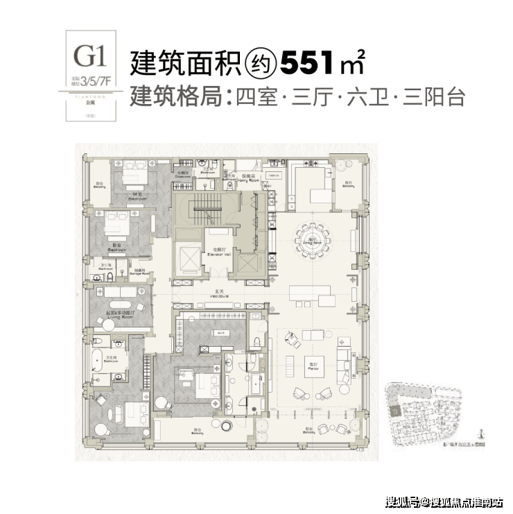 03|约400㎡六套房,满足多代家庭舒居所需单套建筑面积约400㎡,配置6套房空间格局,全面兼顾多代家庭的生活独立性与共处需求。动静分区、主客分离,让家庭成员在共享空间中亦能保有自我秩序,更贴合高净值人群对多场景、多角色生活的实际需求。