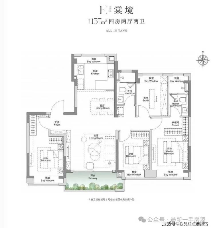 主卧带270°转角飘窗+卫生间,拥有寰宇级瞰景视野,让业主有更好的私密性和生活舒适度。