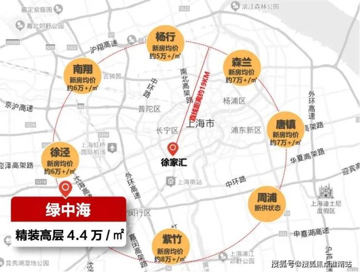 在直线距离徐家汇副中心约19km同等市区半径下,多数板块如唐镇、森兰、紫竹、徐泾、南翔的新房价格动辄都是约6-8w+/㎡。泗泾绿中海以9站徐家汇,再加上此次仅约378万起的总价,可谓是同期同价位新盘里的高性价比佼佼者。