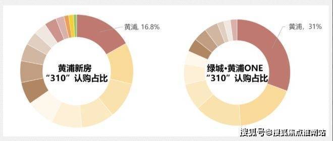 其次,在310客群中,对于黄浦新房来说,本区域客源占比为16.8%,而在绿城·黄浦ONE,这个数字超过了31%。