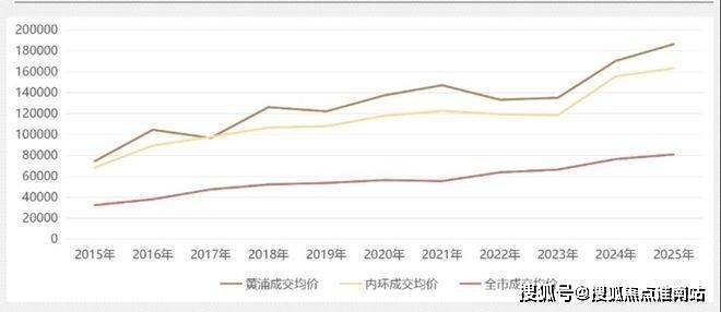 可以看到,跨越周期,上海的新房均价上涨了接近5万/㎡。同期,对内环与黄浦来说,这个数字是9万/㎡和11万/㎡。