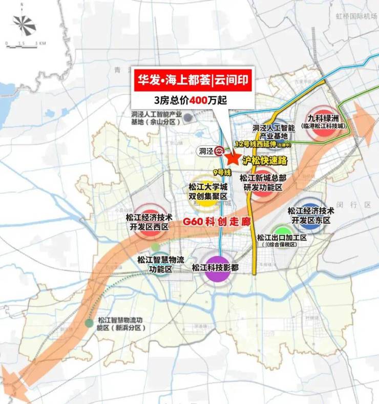 首先你先看洞泾的地理位置,几乎扼住了G60科创走廊的咽喉位置,同时占据了2条交通的枢纽位置,向南有松江大学城的人才源源不断导入,向北有人工智能产业基地落地。