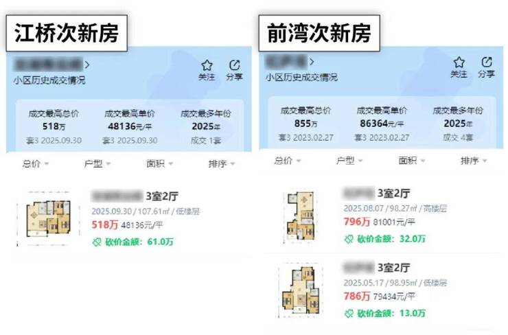 但现在再看,江桥次新二手房成交价只有4.8万/㎡,反观前湾次新二手房还能稳在8万/㎡!