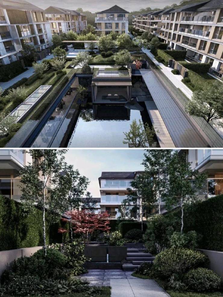 景观营造意境深远|在景观营造方面,设计师们充分尊重地块原有的生态环境,以“四方山色、云水九溪”为主题,精心打造了一个“双轴、一心、一环、七廊道”的景观格局。漫步其中,移步异景,仿佛置身于一幅流动的山水画卷之中。这种隐逸山居的生活方式,让居住者能够远离尘嚣,享受一份难得的宁静与自由。