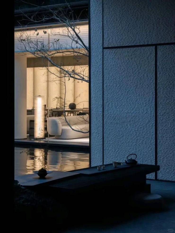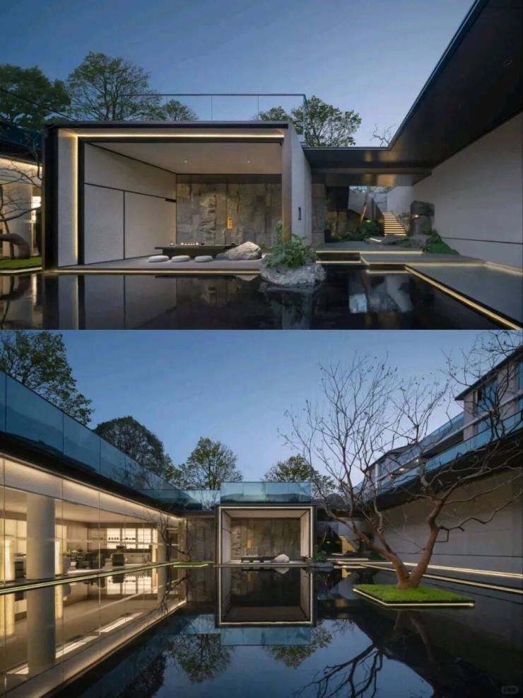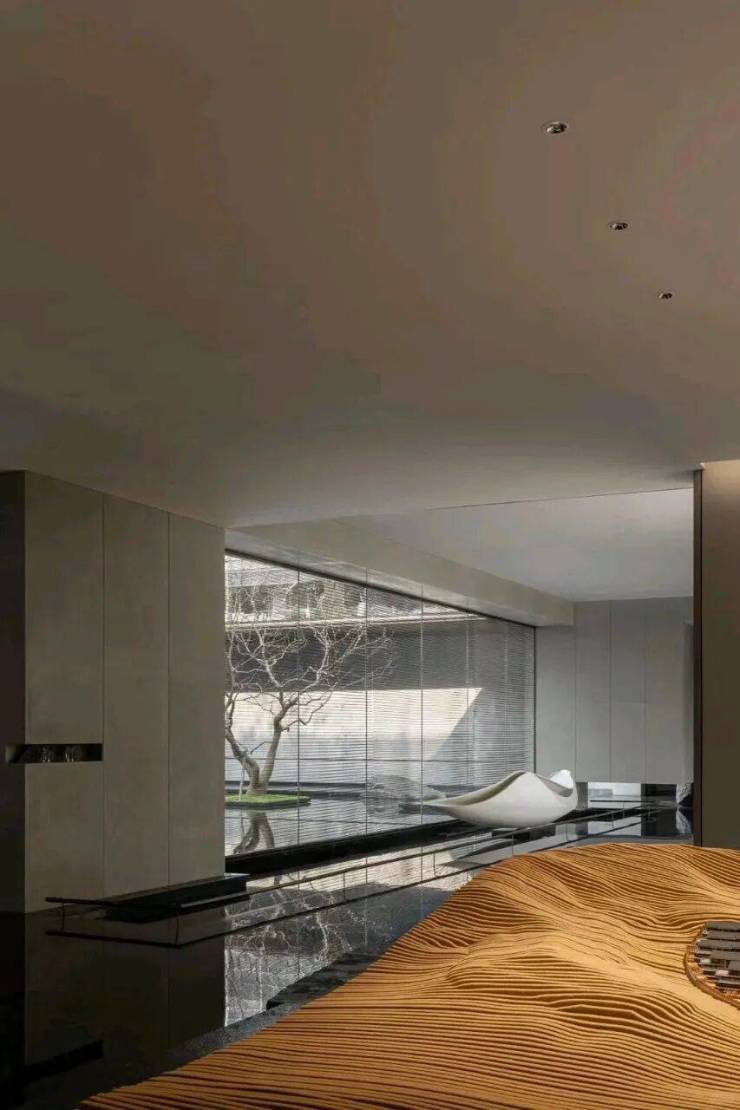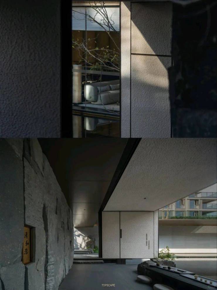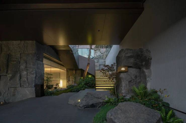 双叠空间匠心独运|由于项目地处坡地之上,设计师们巧妙地利用地形高差,打造出了独特的双叠空间。下叠地下室大部分高于地面,并配备了自然采光天井,使得地下室也能享受到阳光的沐浴,形成了一个下沉式的月光庭院。而上叠则大部分自带露台,西侧和北侧直面茶山,居住者可以在这里品茗赏景,尽享自然之美。
