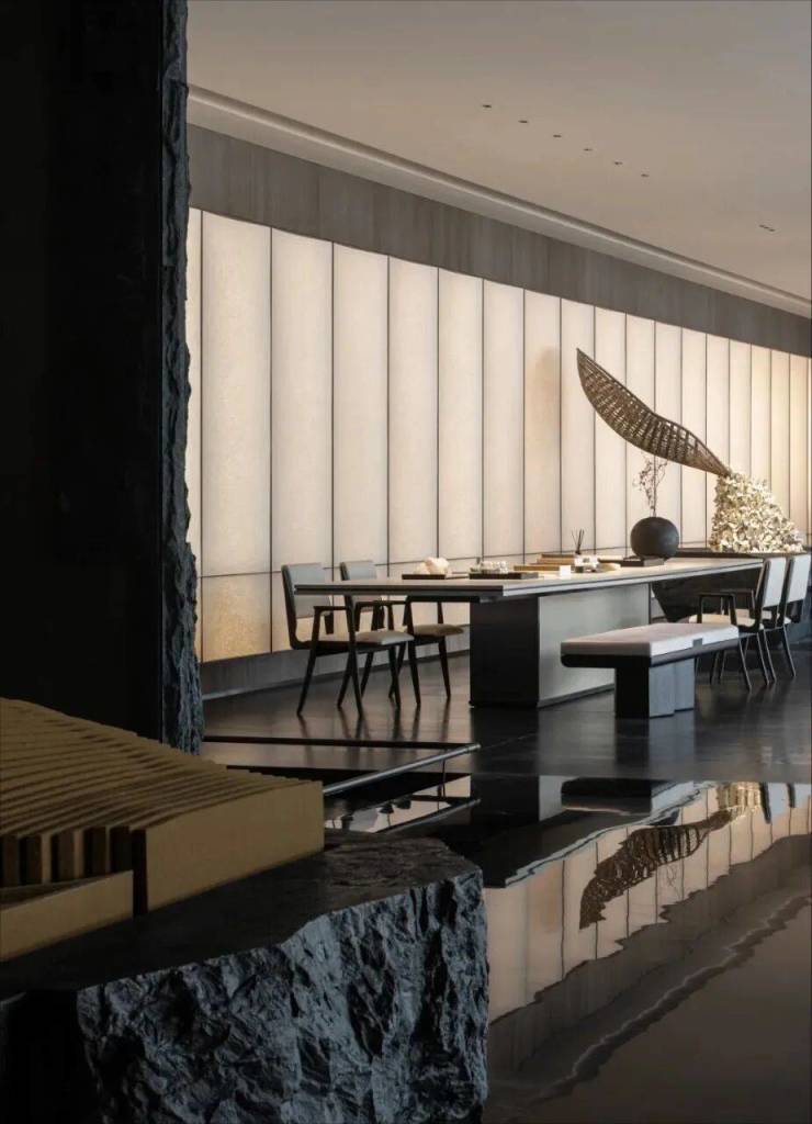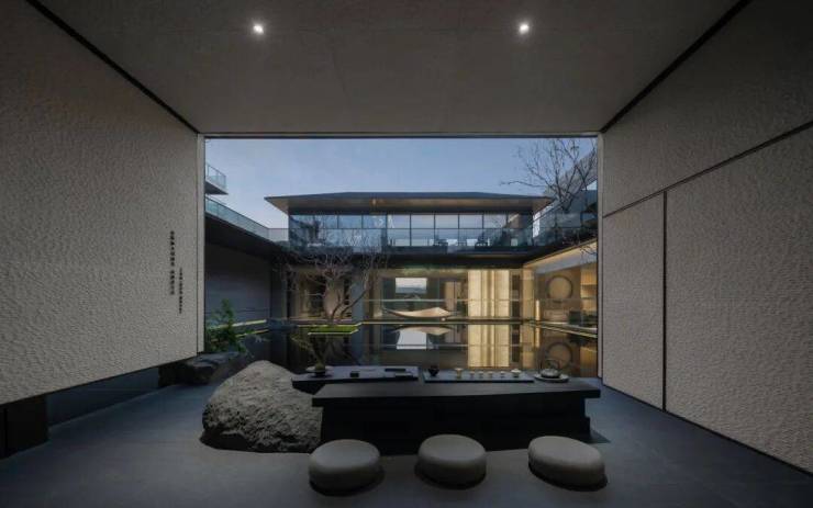 中海·月陇云岚的“云起系”项目与杭州的城市结构完美结合,以平和、谦逊和内敛的方式构建了生活逻辑,形成了建筑与城市、自然之间的诗意联系。在设计的核心理念中,“云起系”深刻尊重原有的自然景观、文化背景和人文信仰,创造出一种既反映天地之美,又促进个人内心放松的空间氛围。在茂密的万担茶山之间,中海·月陇云岚的「山前」生活馆将繁华与宁静自然地融合在一起,提供了一个远离城市喧嚣的隐秘奢华休闲场所。在这里,可以享受一次山谷中的茶会,沉浸在西湖、龙井、茶山的氛围中,既与自然相遇,也找到了内心的宁静。