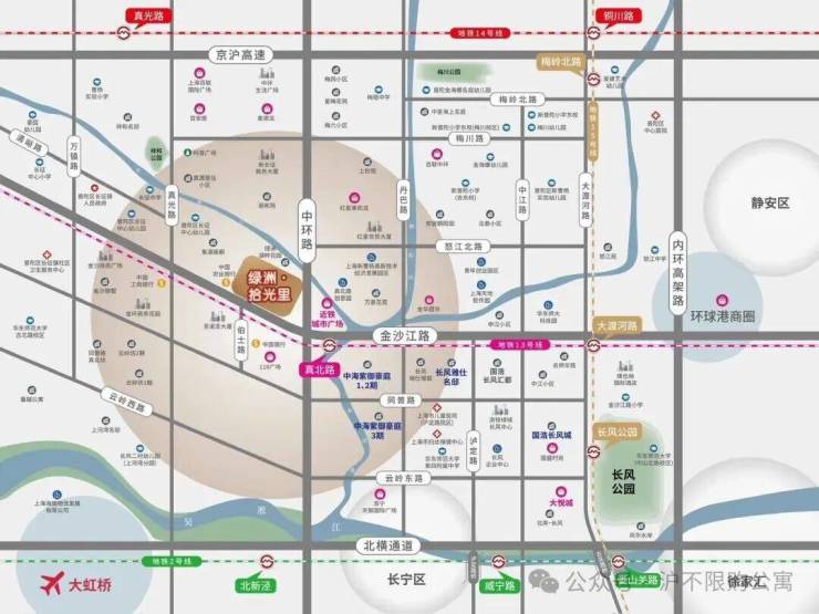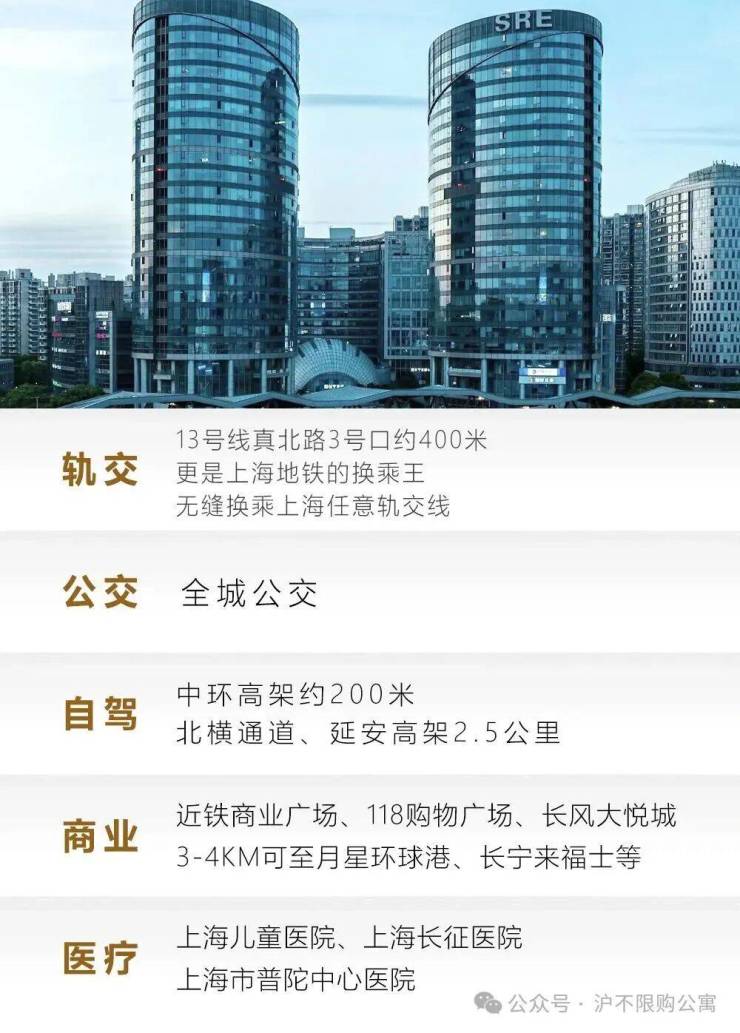 中环核心地铁上盖:项目地处普陀区金沙江路与真北路段,中环线交界处,属于长风商务版块核心区域,与虹桥商务区隔河相望,近大虹桥经济商务圈和长风高端居住区;13号线真北路站地铁上盖,出行极为便捷