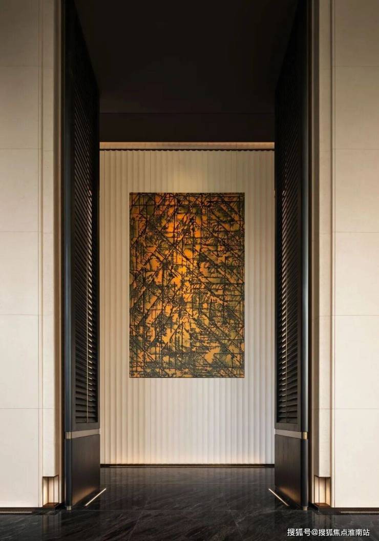 从高档材料的运用到开放式的空间布局,全屋奢石通铺,入户门厅匹配的是纹理低调的超白洞石搭配定制尺寸卡门,一眼看去,安全感满满。进门后,意大利进口石材全屋通铺,每一处地砖流水型纹路都能对应,需要提前至少2年预定的梅西同款进口芬迪白石材被用作电视背景墙,阔绰感不言而喻。