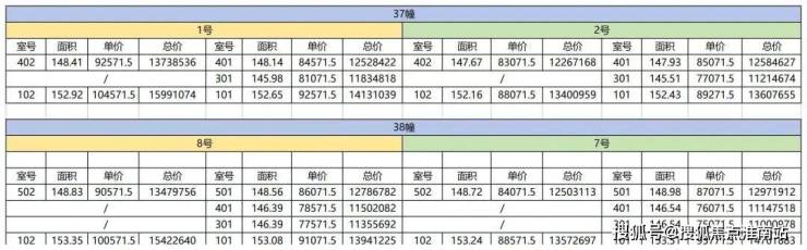 项目一房一价表