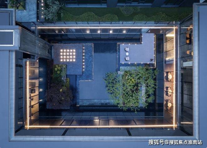 山水入画营造下沉式中央庭院 ,约12米飞流星瀑,臻选蓝翡翠奢石打造银河水境,百年丛生乌桕封藏四季风景,邀山水融自然,一方东方禅意画境