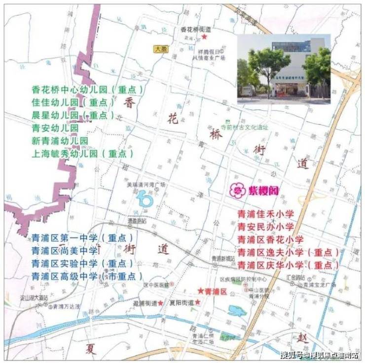 教育方面:从幼儿园到中小学,学府云集,有逸夫小学、香花桥小学、嘉禾小学、实验小学、实验中学、青浦第一中学、尚美中学;兰生复旦分校(从幼儿园到高中)、平和双语学校(从幼儿园到初中,在建)、复旦附中青浦分校等硬核名校都在周边;复旦大学青浦校区(在建)。