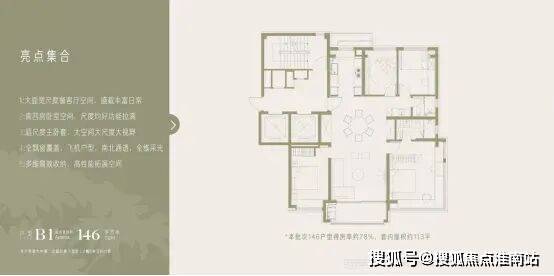 · 146㎡四房:真四房功能性+奢阔尺度,适配多孩家庭或三代同堂需求。
