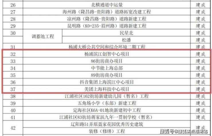 这份来自杨浦区官方公示的项目清单,清晰标注了从“新开工”“在建”到“建成”的全周期进度。其中, 抖音、美团、滨江创智中心的全面建成,将杨浦滨江的发展确定性,从蓝图实实在在落地为实景。