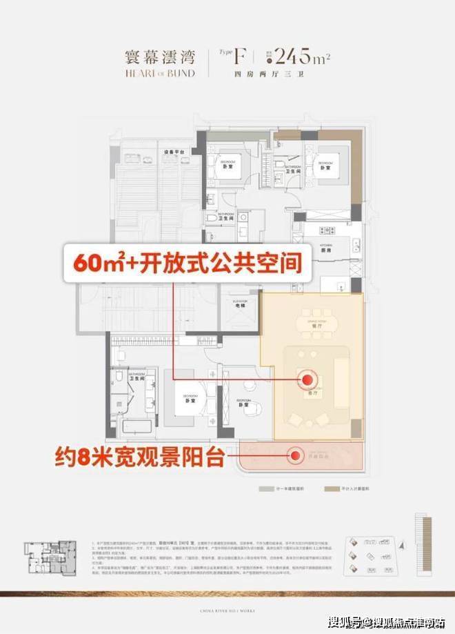 超过60平米的开放式空间(客厅、餐厅、X空间、阳台一体化),功能灵活,可满足大型派对或家庭休闲,尺度感直接媲美原来350㎡的滨江户型.