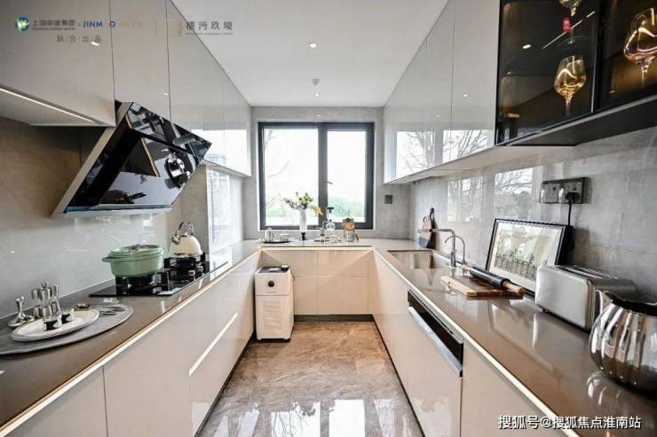 侧边可以做洗护功能区,放置洗衣机、烘干机、储藏柜收纳等。餐厅空间相当阔绰,可放置四人桌或六人桌,尺度之大在600万级产品中非常难得一见。U型厨房带飘窗的设计,左侧预留了双开门冰箱位置,让整个空间的利用率更高。交付标准相当奢豪华,配置西门子的灶台、油烟机、洗碗机高配三件套,弗兰卡的水槽及抽拉式龙头,石英石台面,欧派定制柜柜体,部分金茂定制岩板的墙面等。双卫设计,避免早上洗漱的“排队”,充分体贴日常需求。