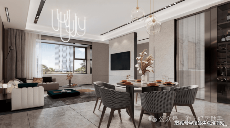 户型方正,南北通透!约6.6米阔面大横厅+4.8米宽境阳台+ 3.15米阔绰层高彰显豪宅气派!阳台从空间和视觉上延伸进深感,尺度之间尽显大气奢华!