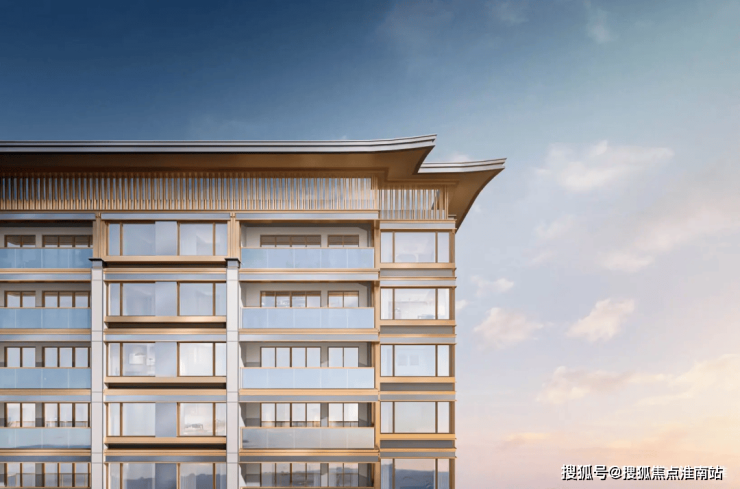 大平层建筑立面以大面积铝板、首层局部石材及大面积玻璃构成,屋顶建发中式标志性的飞檐设计,美观的同时还比较显格调。
