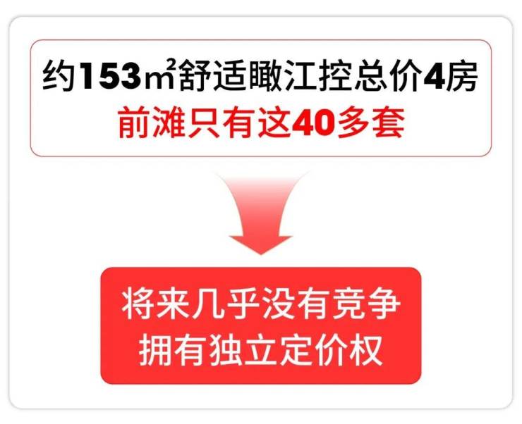 而本项目153㎡4房中高区总价约1700-1800万,你无需拉太高杠杆,可以友好门槛锁定滨江4房。