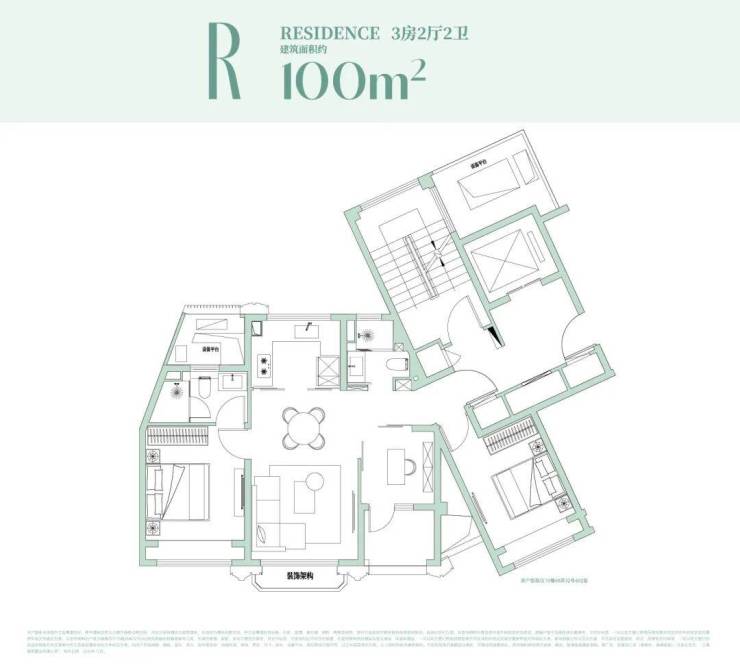 约99㎡户型设计:经典飞机户型格局!独立观景阳台!