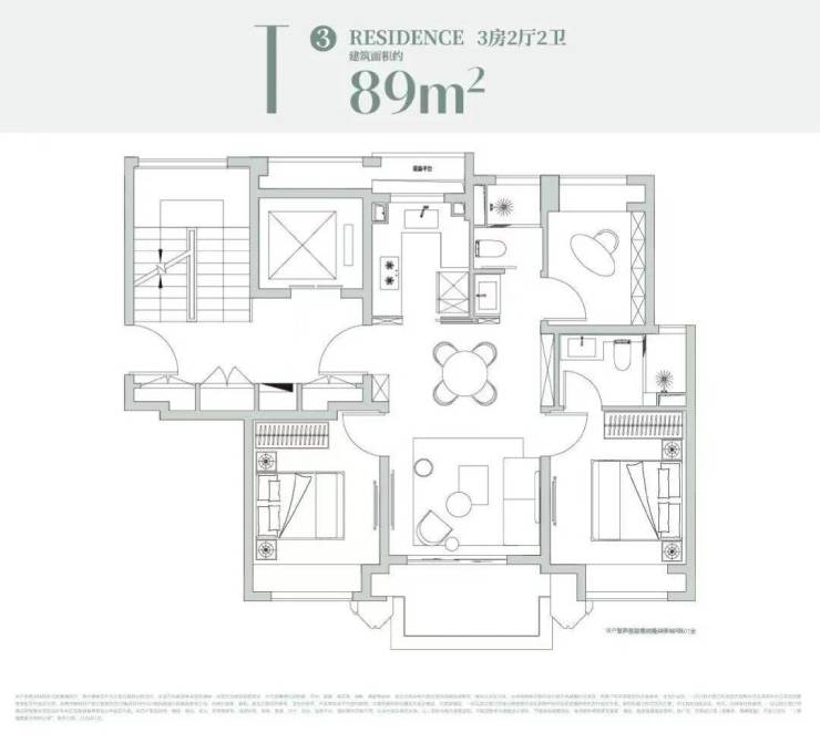三房:约89㎡、99㎡(经典飞机户型,三开间朝南)